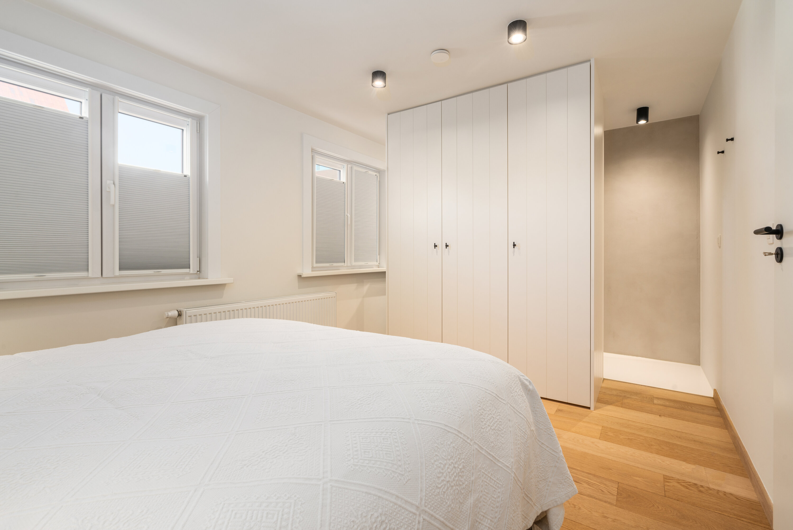 - Bedroom 1 : Wardrobe, Double bed 2x80x200, Parquet floor, Down blankets for two people, Single sink, Walk-in shower, 2x Hoofdkussens