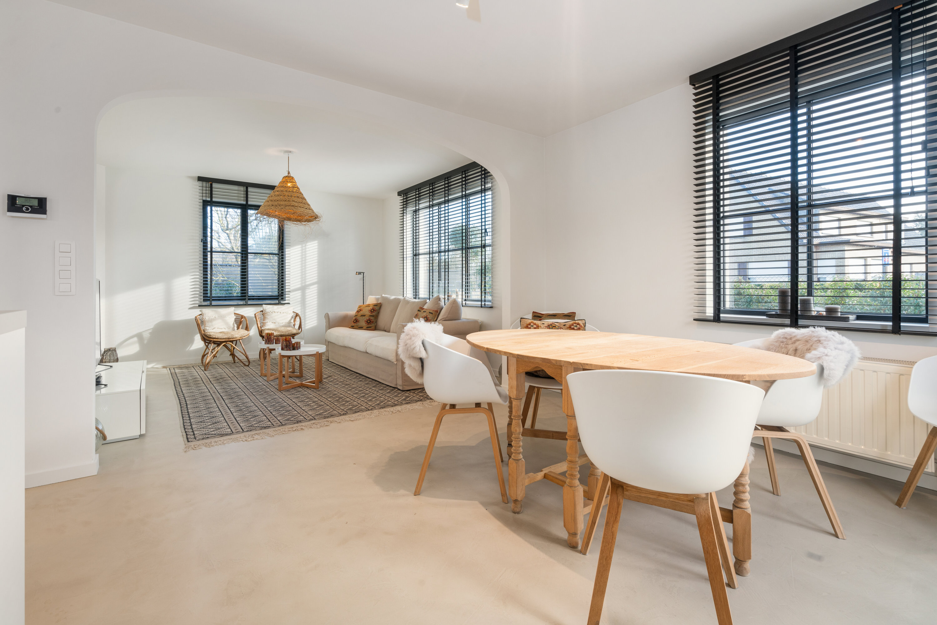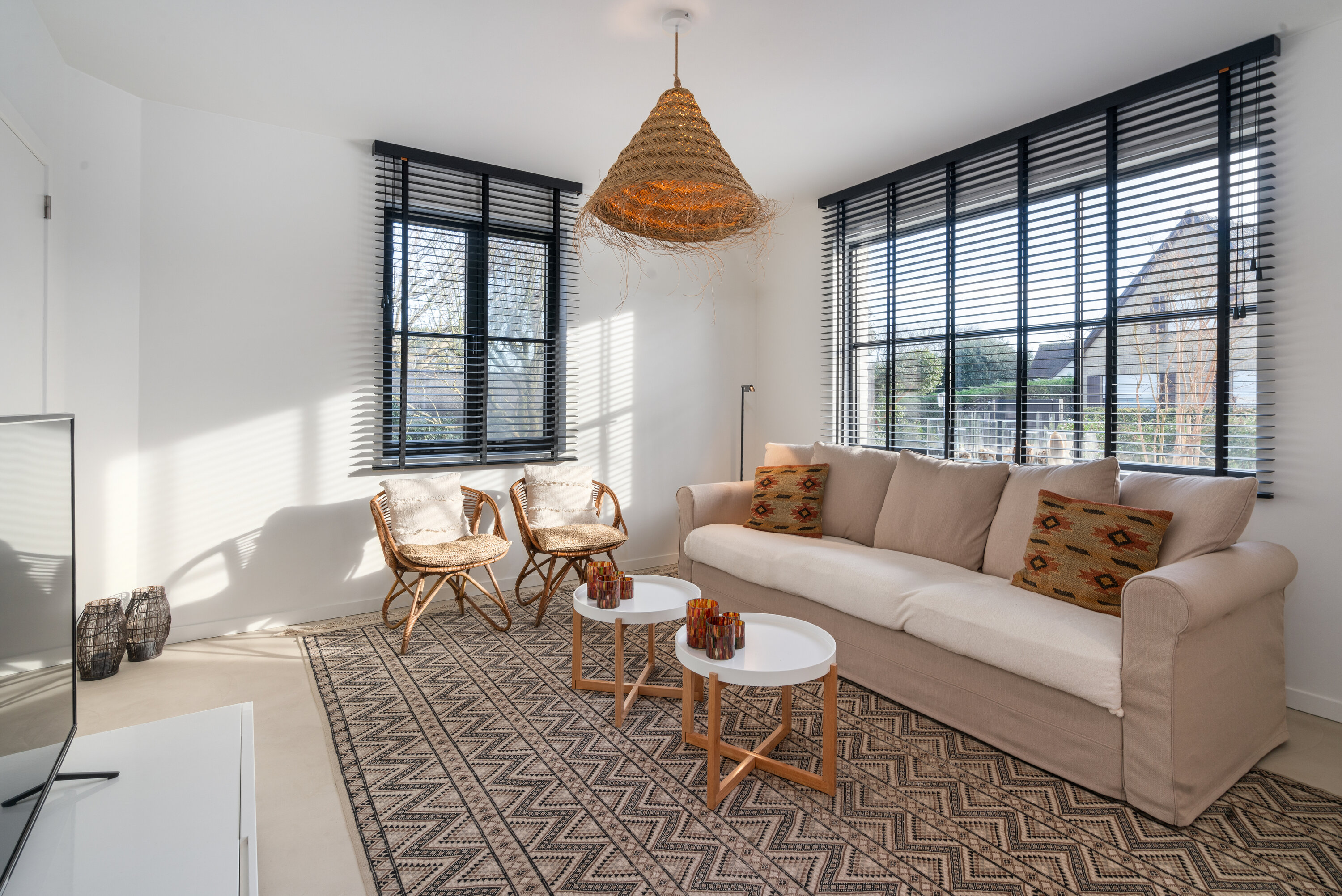 Upon entering the villa, a calming atmosphere embraces you immediately, thanks to the carefully designed interior that radiates tranquility and balance. The living space is bathed in natural light, flooding every corner of the villa with a warm glow that caresses the senses.