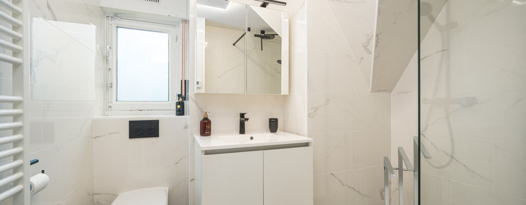 - Bathroom : Walk-in shower, Single sink, Toilet