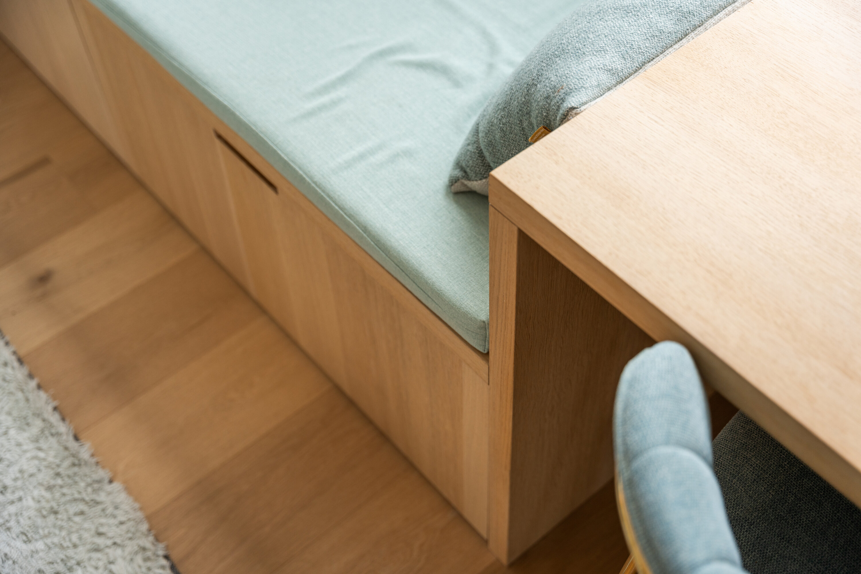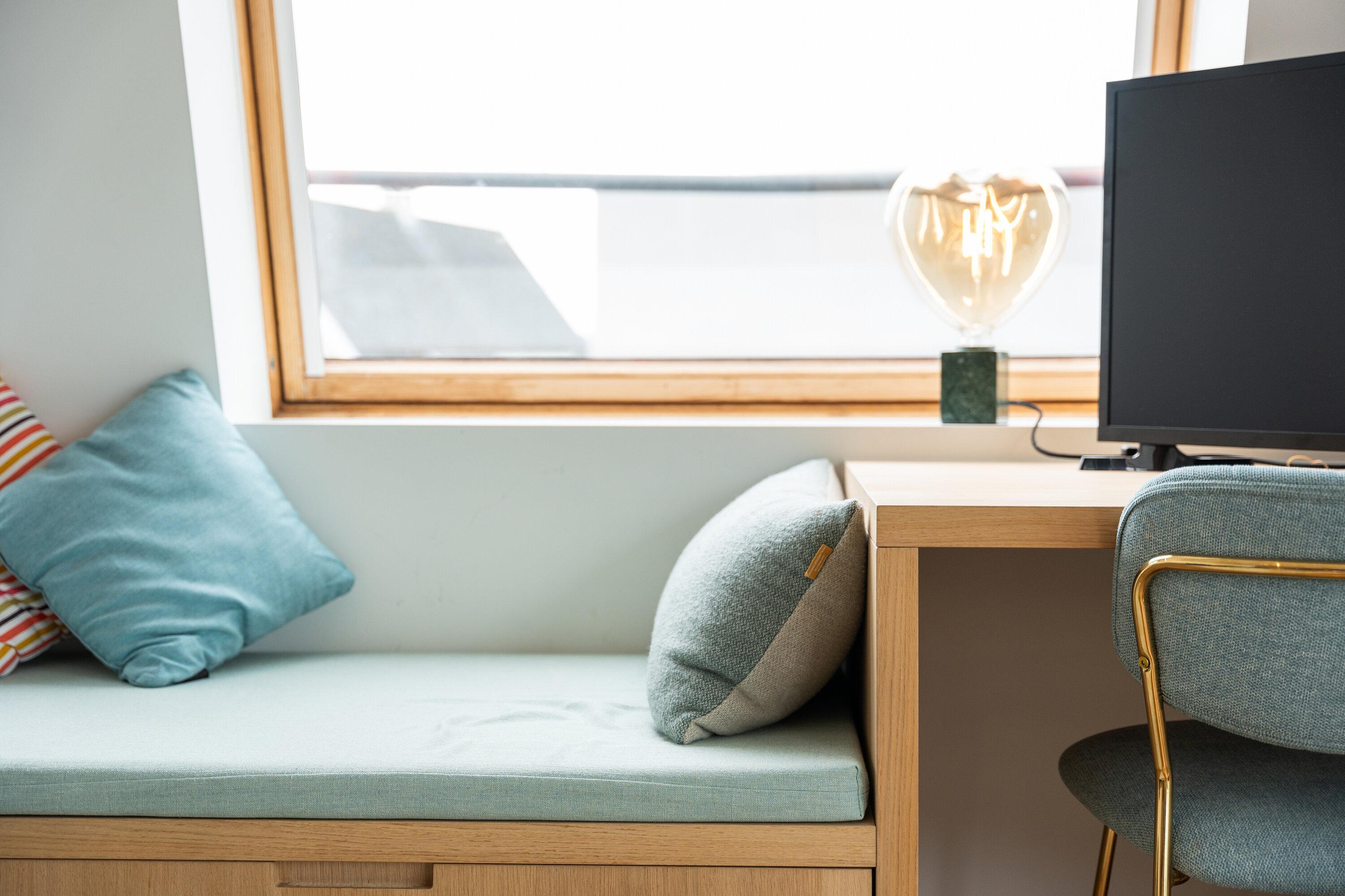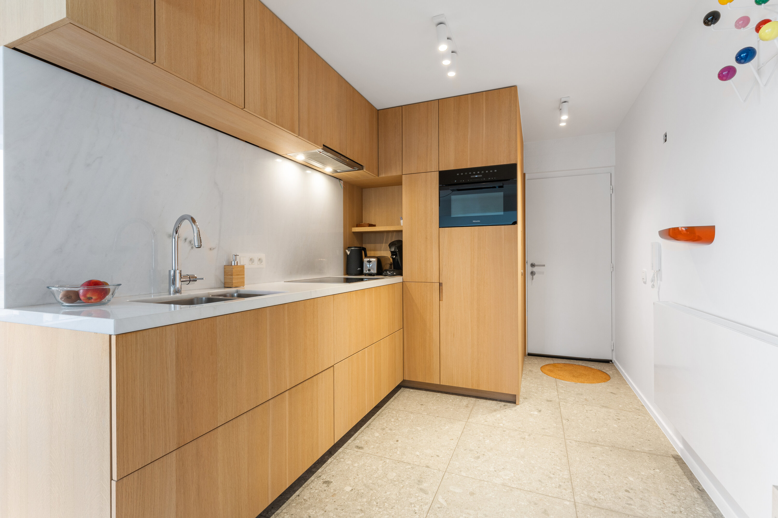 - Cuisine : Hotte, Lave-vaisselle, Four à micro-ondes Combi, Plaque de cuisson à induction, Réfrigérateur avec compartiment congélateur, Bouilloire, Grille-pain, Cafetière avec dosettes, Machine à laver