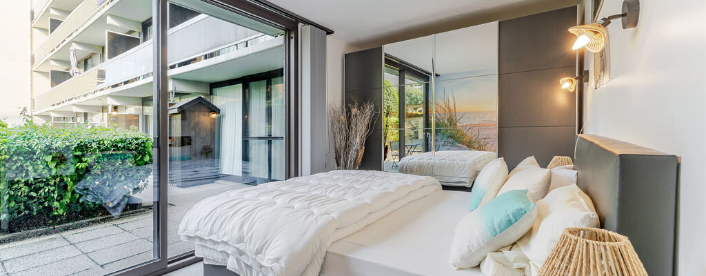 - Chambre 1 : Parquet, Garde-robe, Lit double 160x200, Couvertures en duvet 2 personnes, 2x Oreillers , Terrasse, Chauffage électrique