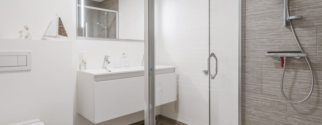 - Salle de bains : Douche à l'italienne, Lavabo double, Toilette