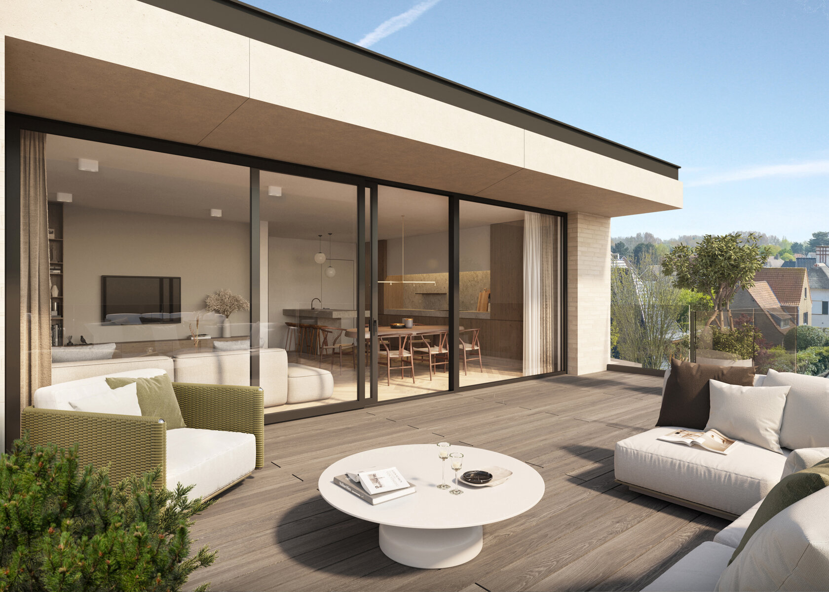 Trois résidences en style villa, des bijoux d'architecture, offrent des appartements de luxe à deux ou trois chambres à coucher. Les appartements ont une orientation idéale vers le sud et garantissent une unique sensation d’espace grâce aux grandes baies-vitrées et aux terrasses royales. Les rez-de-chaussées disposent d'un jardin avec jouissance privative.