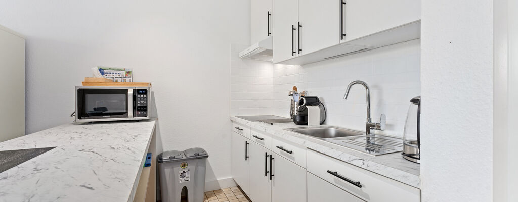 - Cuisine : Four, Réfrigérateur avec compartiment congélateur, Four à micro-ondes Combi, Mixeur, Cafetière Nespresso, Hotte, Plaque de cuisson à induction, Bouilloire, Presse-fruits, Lave-vaisselle, Cafetière à filtre