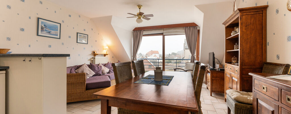 - Woonkamer : Digitale TV, Radio, DVD-speler, Balkon, Tegelvloer, Opklapbed één persoon, Extra kussens en dekens