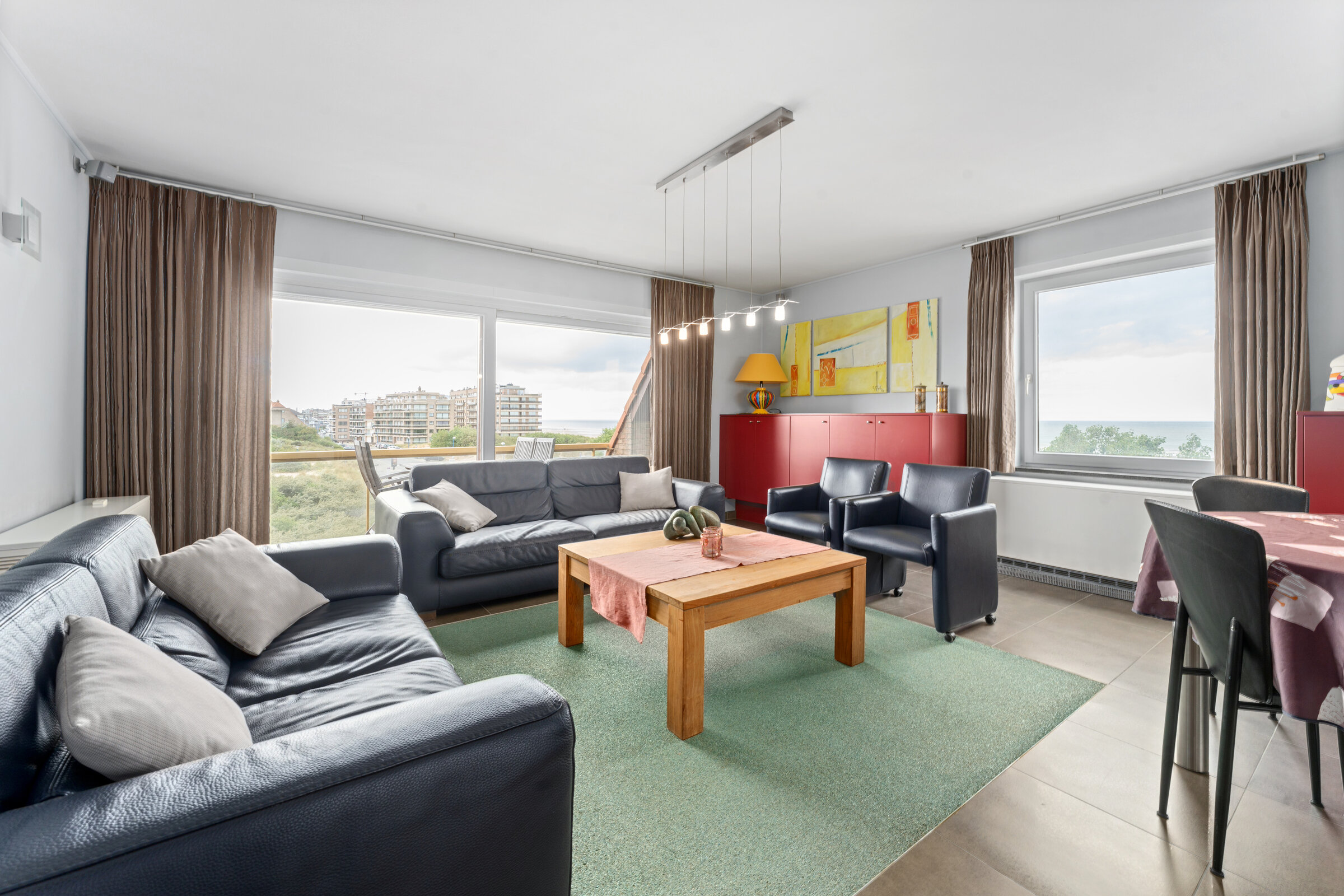 Ruim duplex- hoekappartement met prachtig zicht op de duinen en zee van Koksijde. Er zijn 2 slaapkamers, een grote woonkamer en een ruime badkamer met jacuzzibad. Garage beschikbaar.