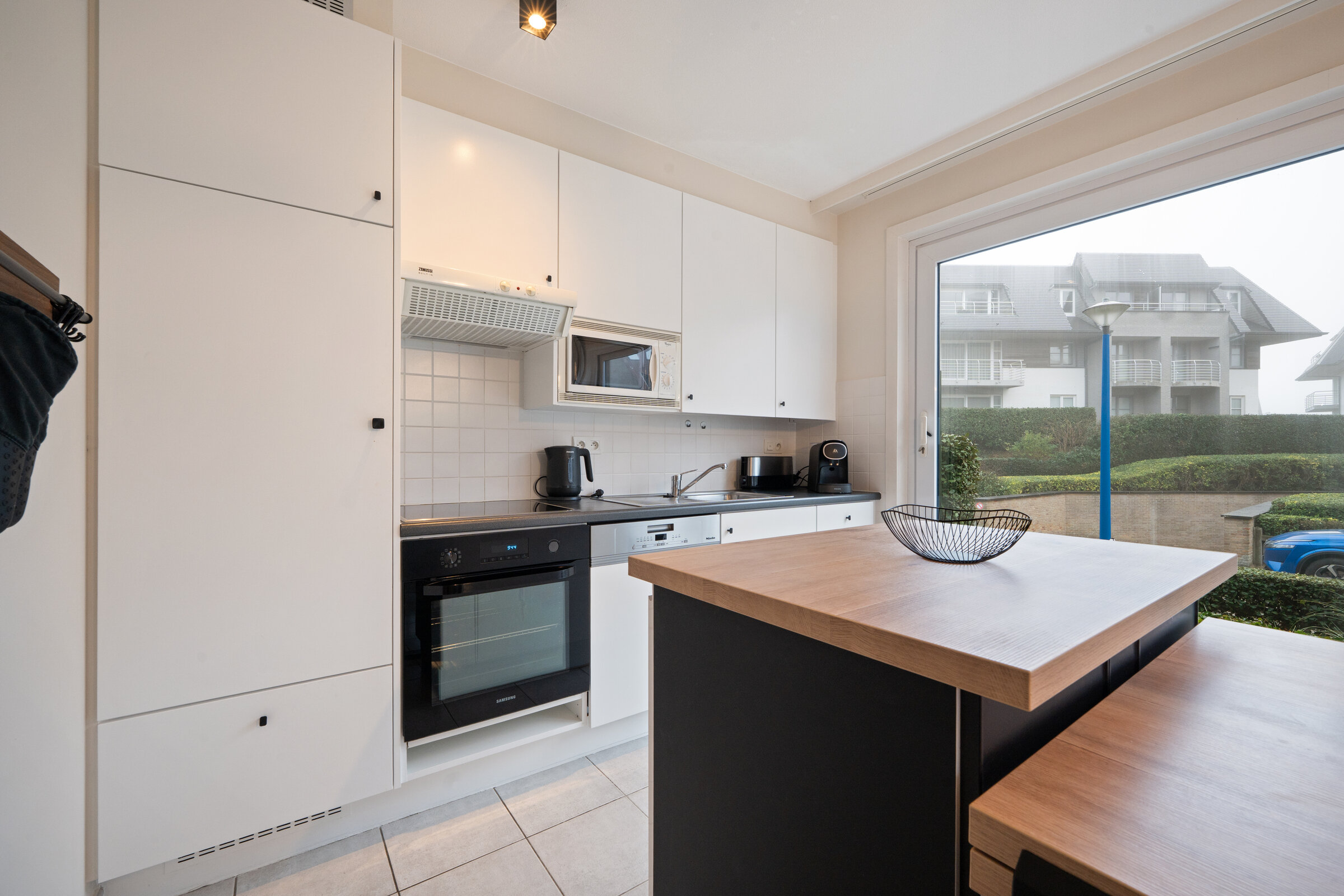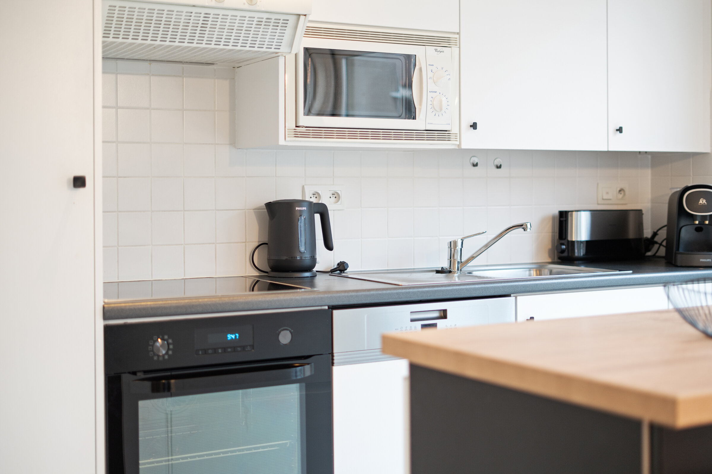 - Keuken : Oven, Mixer, Microgolfoven, Afzuigkap, Kookplaat inductie, Waterkoker, Fruitpers, Koffiezetapparaat caps Dolce Gusto, Koelkast met diepvriesvak, Broodrooster, Croque-monsieur toestel