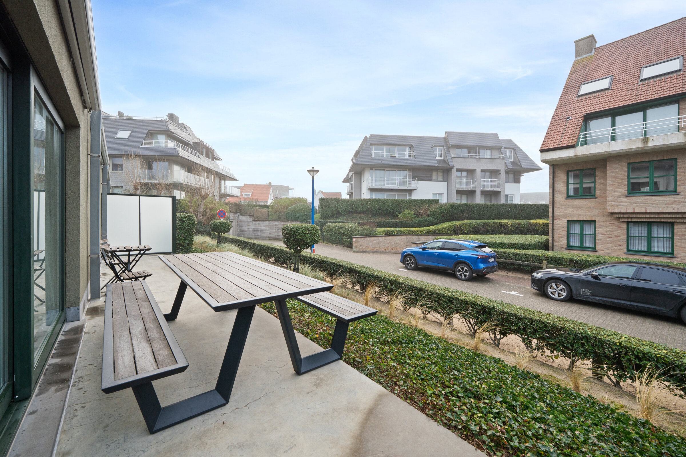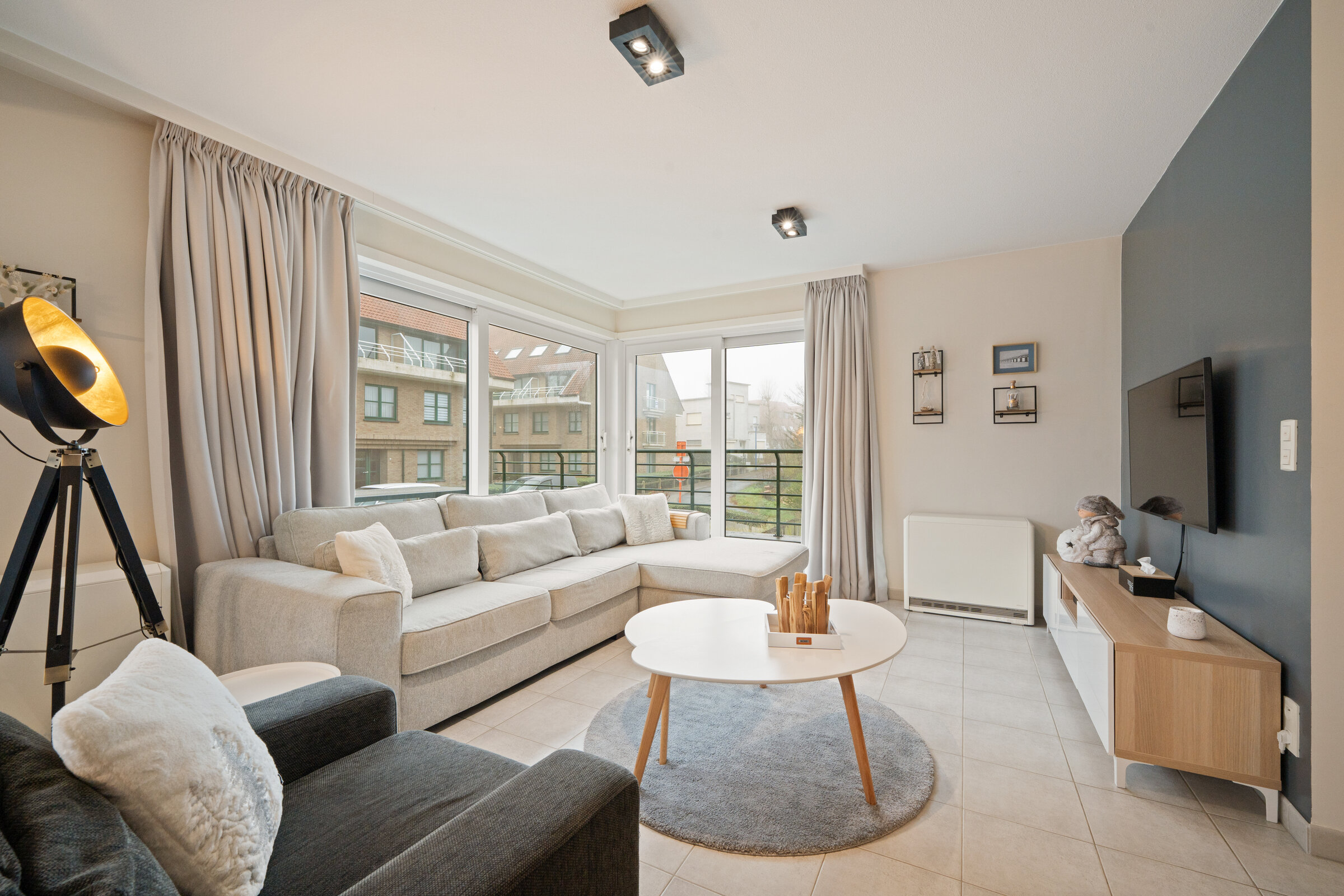 Ruim en lichtrijk hoekappartement met 3 slaapkamers, open keuken en groot hoekterras. Er is ook een grote garage beschikbaar onder het gebouw.