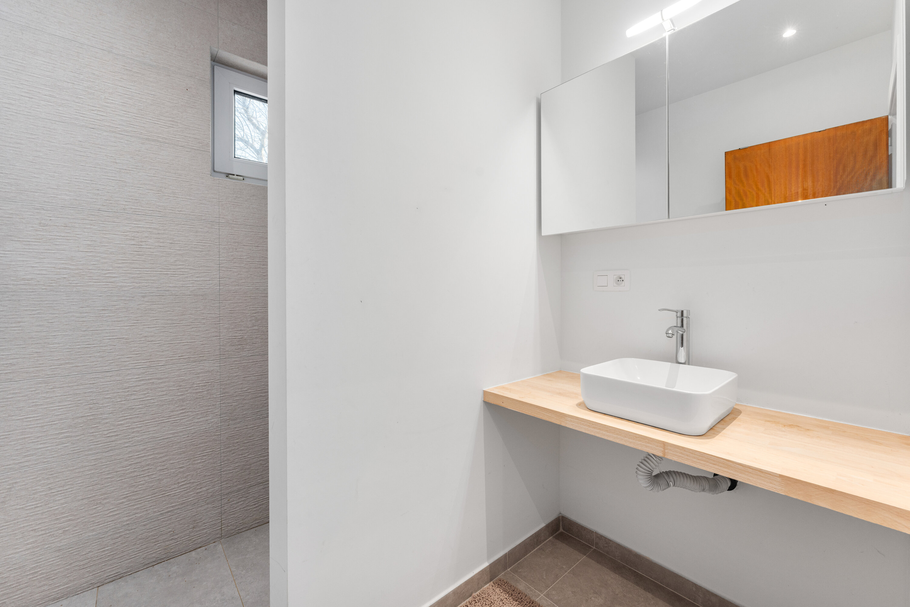 - Badkamer : Ligbad, Toilet, Enkele lavabo, Douche, Enkele lavabo