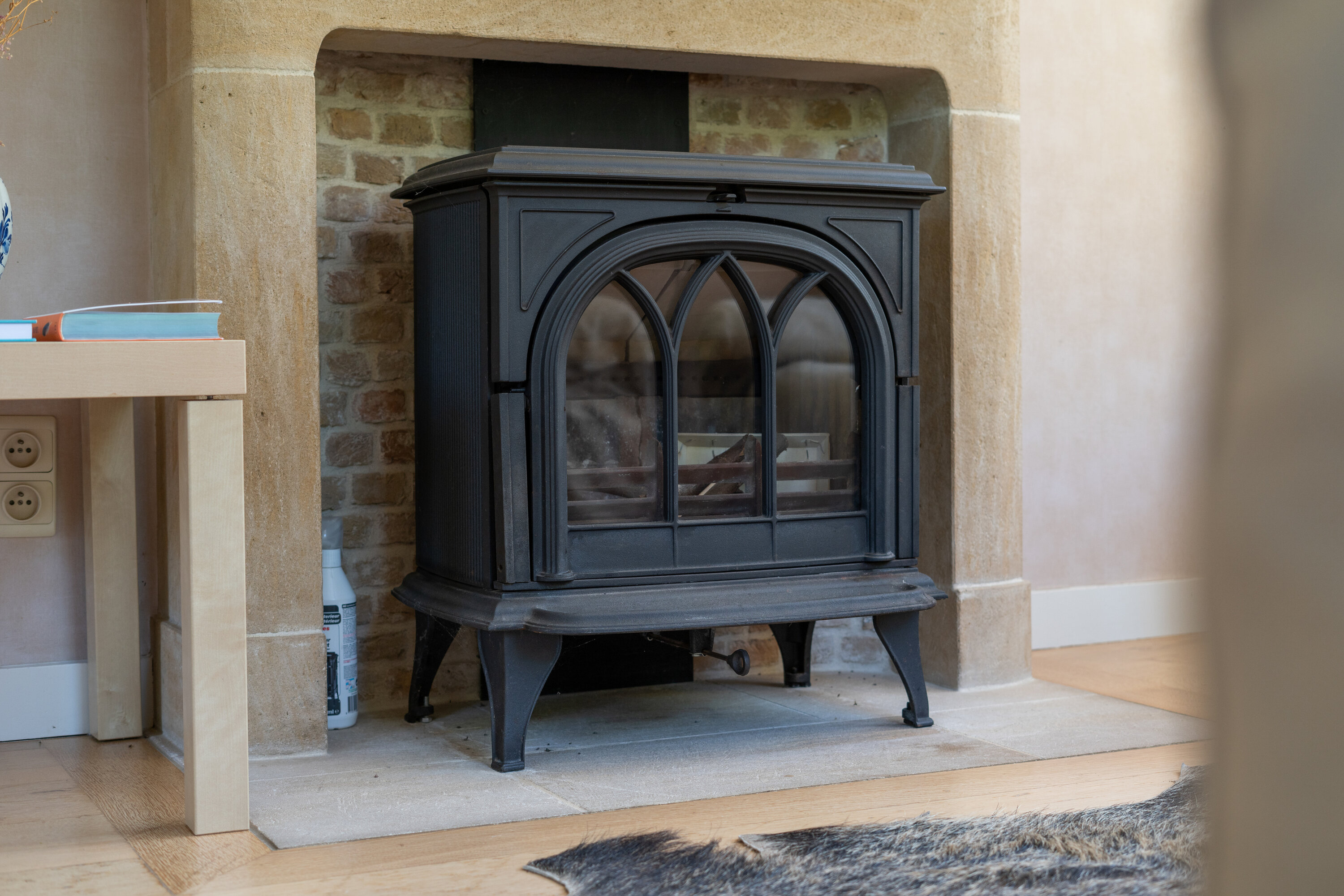 - Woonkamer : Parketvloer, Houtkachel, Boeken en leesmateriaal
