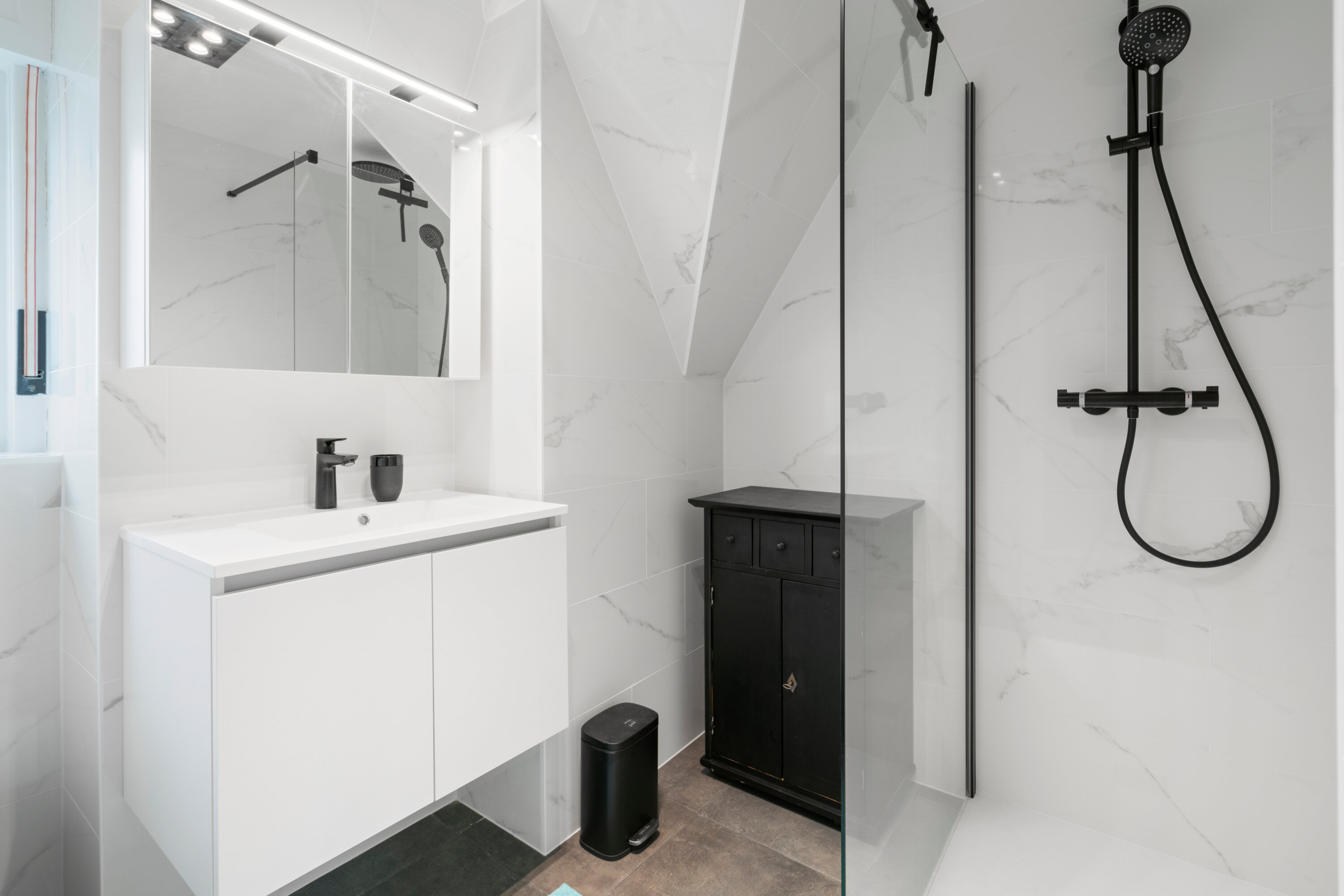 - Badkamer : Inloopdouche, Enkele lavabo, Toilet