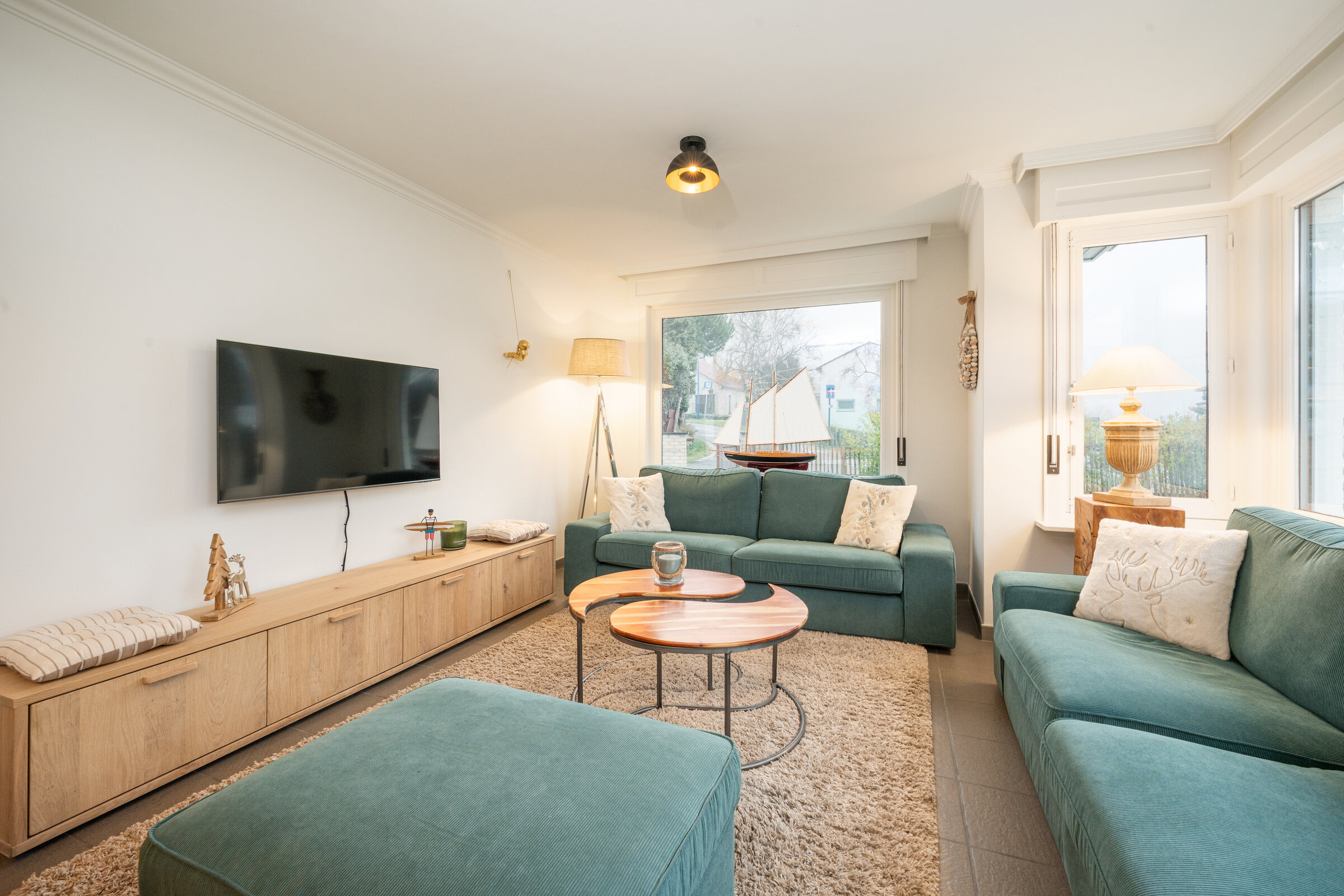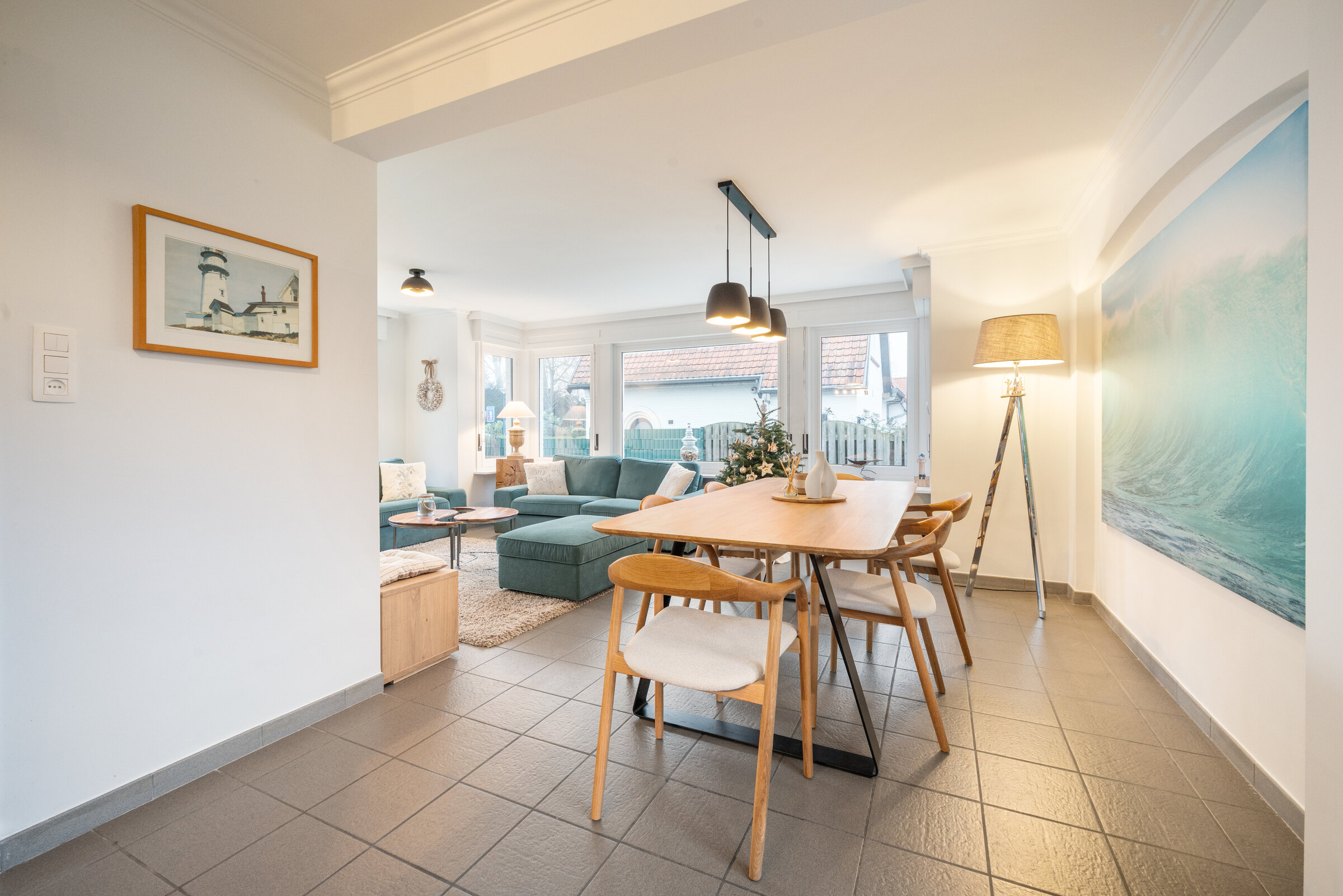 Deze prachtig vernieuwde vakantievilla, gelegen in een rustige woonwijk en vlakbij brasserie Siska, beschikt over 3 volwaardige slaapkamers en een badkamer op de eerste verdieping en een gezellige living en een heel ruime, lichtrijke keuken op het gelijkvloers. De villa is volledig omringd door een grote tuin met eettafel en gezellige lounge. Op de oprit is er plaats voor 1 wagen.